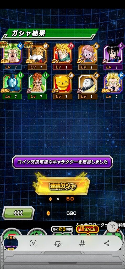 ベジータとトッポのガチャ合わせて50連ひいてピックアップ無し